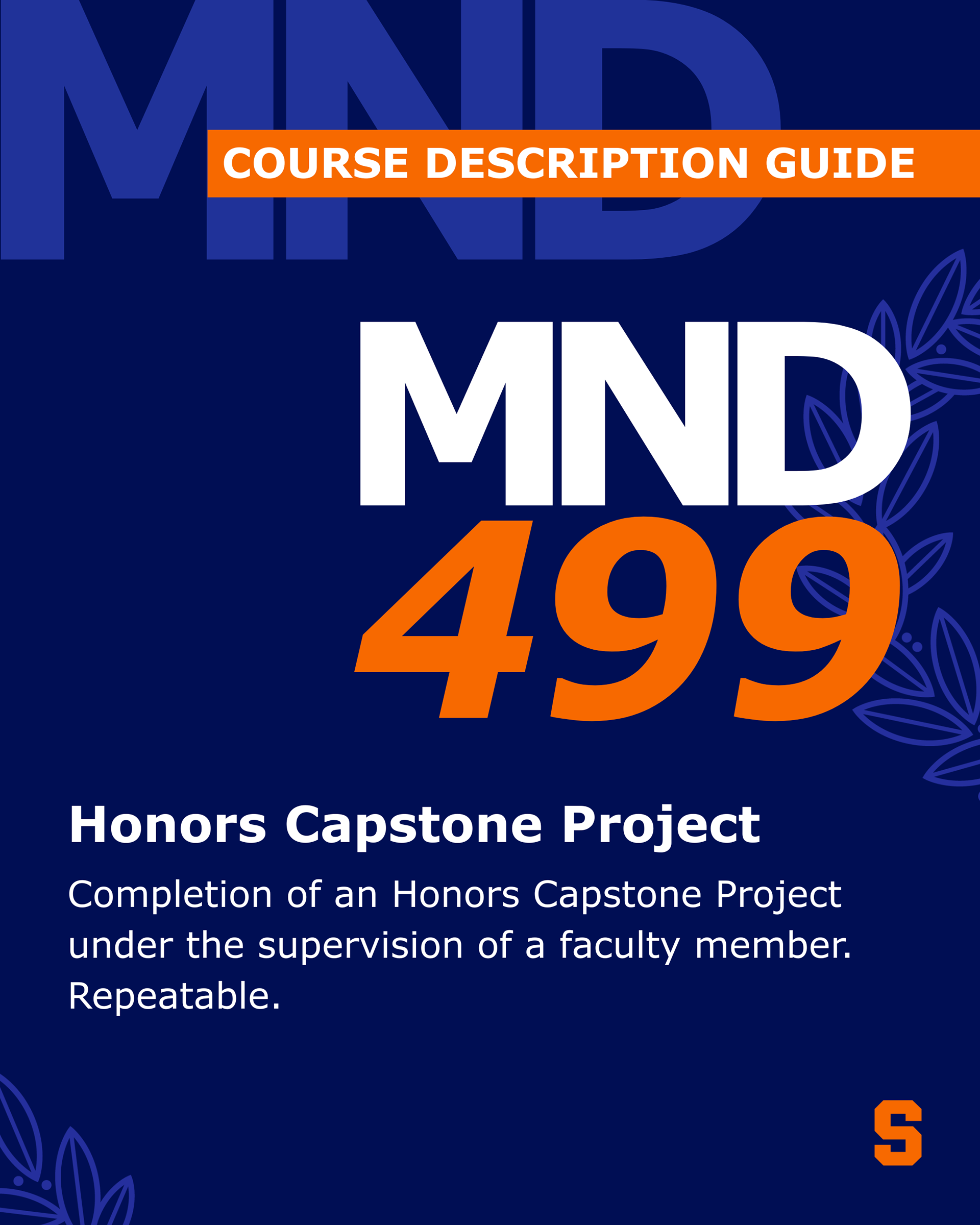 The client requested a graphic for each MND course offered in addition to a cover slide. While the post was originally intended for Instagram, it can also be used for internal and external use in informational or promotional roles. I did not include the graphics for each course (15 in total), but I provided a few to give a sample.